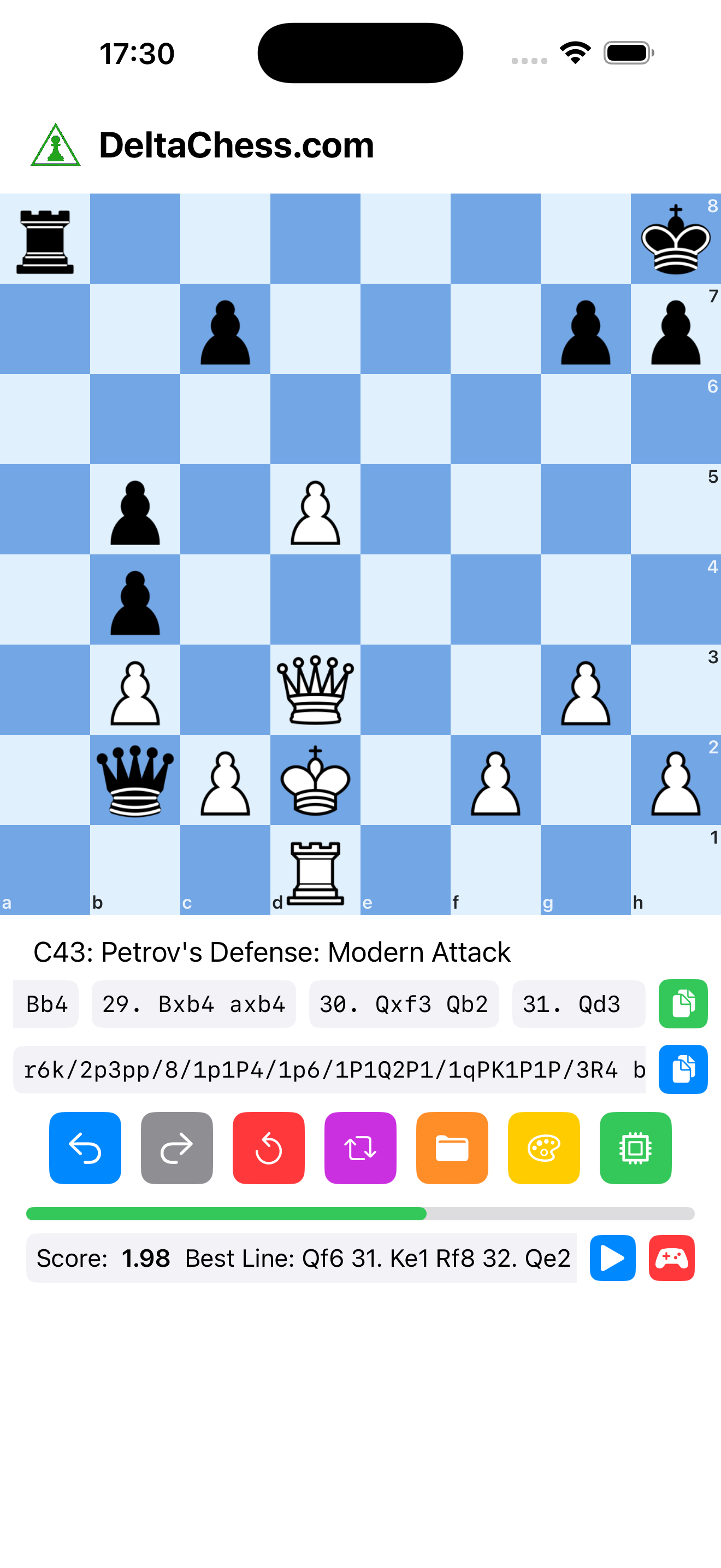 DeltaChess pairs a powerful analysis engine with elegant UI and learning tools — interactive puzzles, move-by-move coaching, opening explorer and cloud game analysis. Built for players who love to improve.